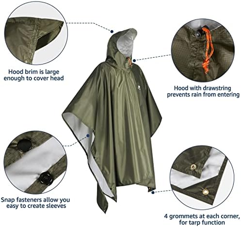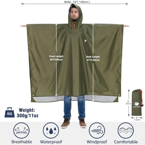 The Anyoo Waterproof Rain Poncho is the perfect solution for staying dry during outdoor activities. This lightweight and reusable poncho is made with high-quality material that is both waterproof and durable, ensuring that you stay dry and comfortable in any weather conditions. The hooded design and long length provide extra protection, while the spacious and adjustable design makes it suitable for all body types. The versatile design allows for easy movement and can be worn over backpacks, making it an ideal choice for hiking, camping, festivals, and any other outdoor adventures. With its compact and portable design, the Anyoo Waterproof Rain Poncho is a must-have addition to your outdoor gear collection.,